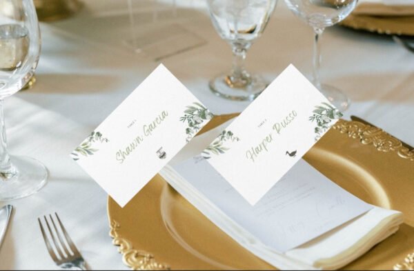 Crafted from the finest quality cardstock, our place cards boast a luxurious texture that is both pleasing to the touch and a feast for the eyes. Measuring a perfect 3.5 inches x 2 inches when folded, they sit beautifully at each setting, offering a seamless blend of functionality and aesthetic appeal.