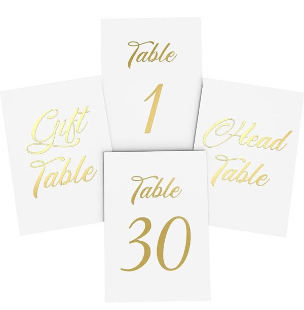 Gold Table Numbers 1-30 for Wedding Reception – Gold Foil Table Number Cards 4×6 Inch with Head & Gift Table – Restaurant Table Numbers – Wedding Numbers for Tables Card Stock Wedding Table Numbers